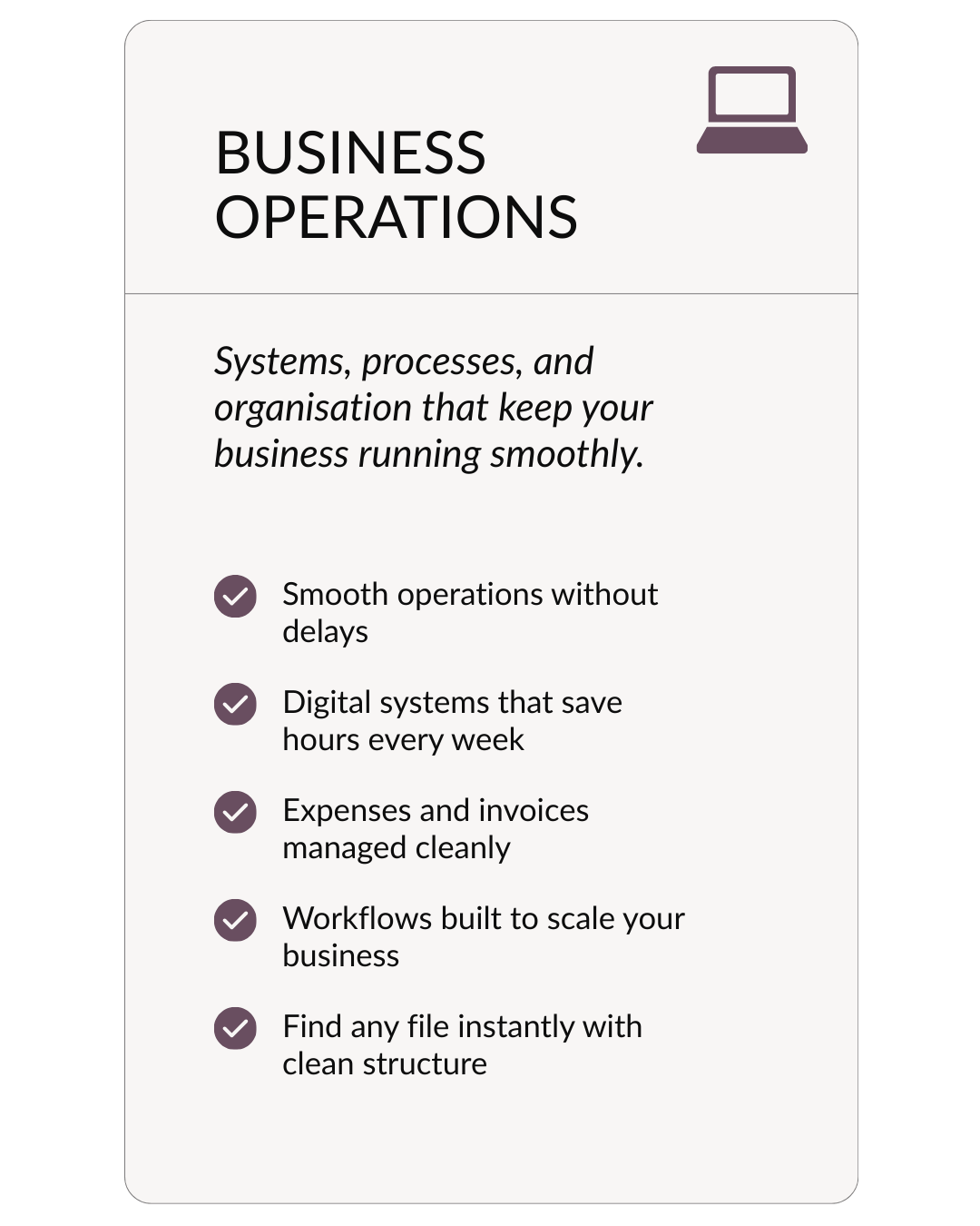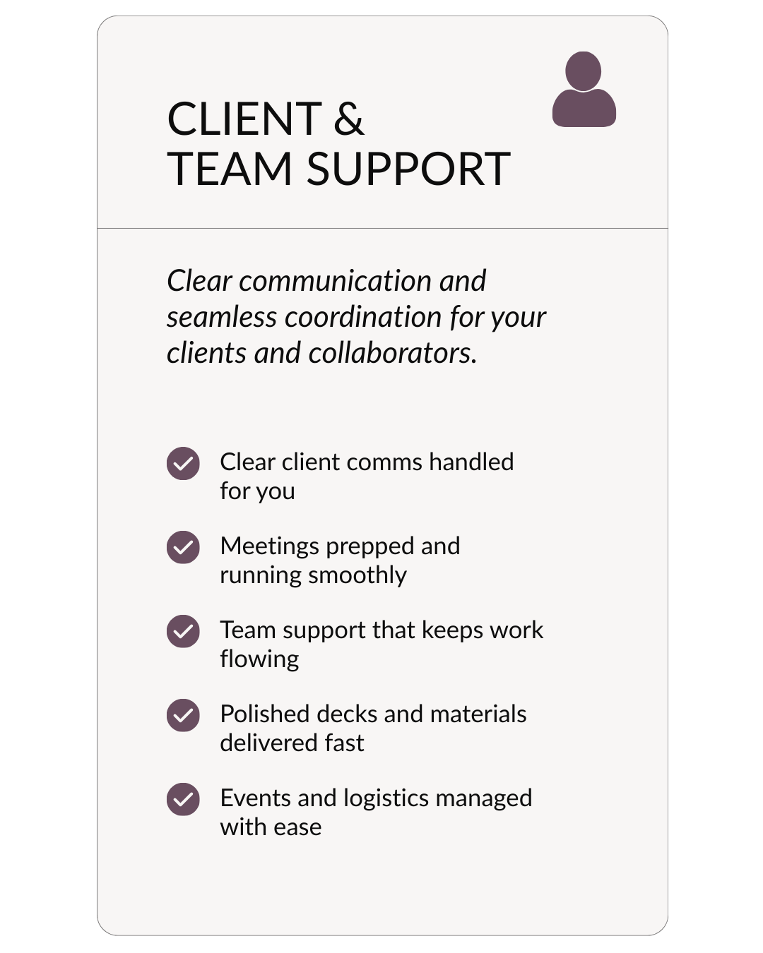 Whether you need operational structure, personal assistant support, or both - we’ll help you select the right fit.