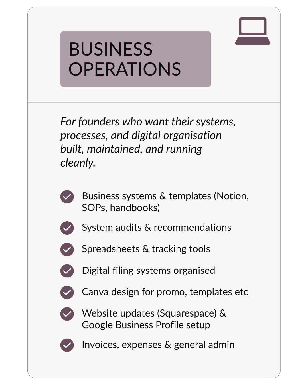 As your business develops, the amount of coordination around it naturally expands. Admin builds, client delivery becomes harder to keep steady, and the ongoing tasks begin to compete with the work only you can lead. Eventually, managing everything alone stops being realistic. A VA steps in to take ownership of the support that underpins your week: keeping communication consistent, projects organised, and the day‑to‑day running without you needing to oversee every detail. It’s the shift from doing everything yourself to having reliable support that makes your schedule more manageable.